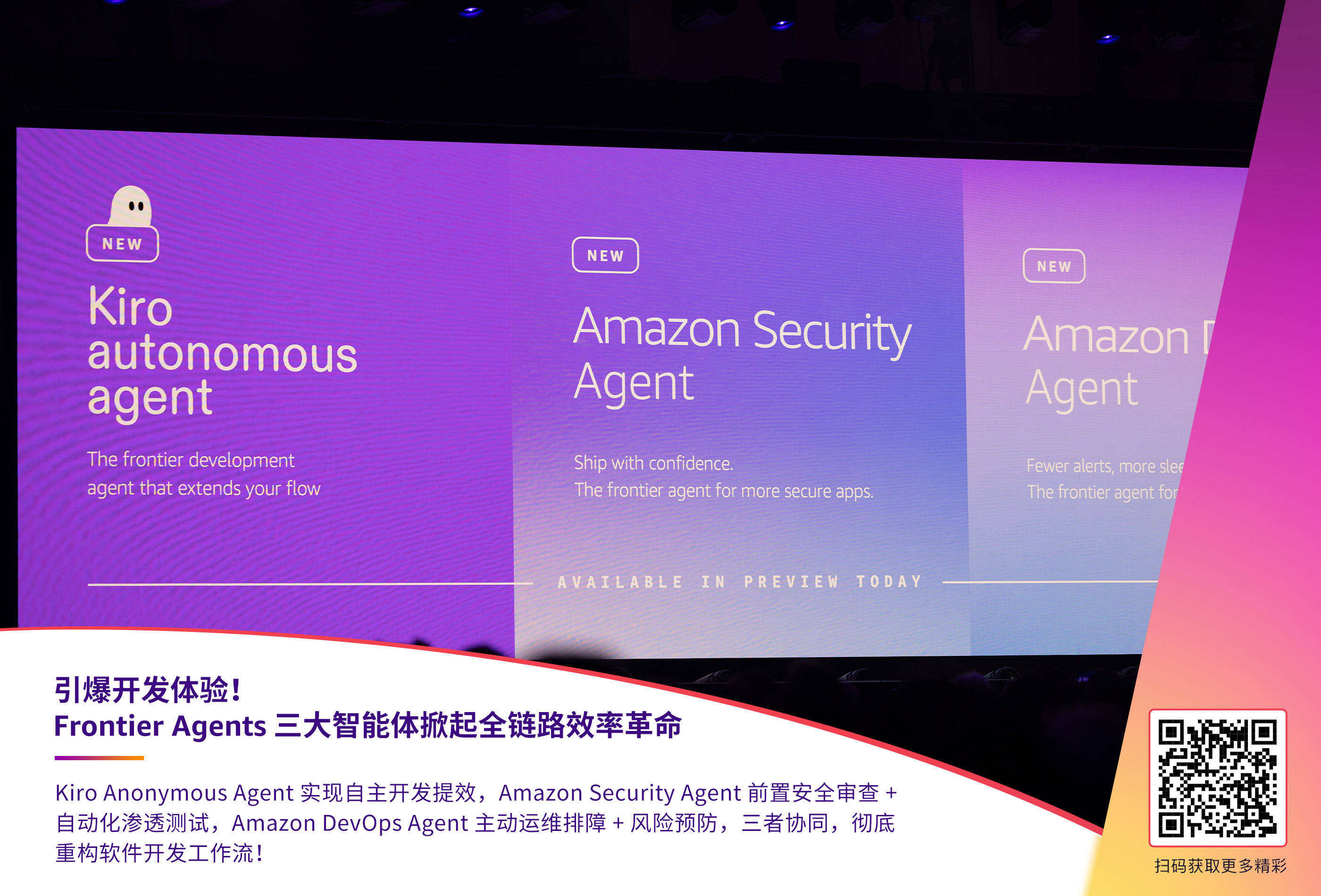 🤖 模型 + Agent + Kiro 三杀来袭!Amazon Bedrock 集齐全球顶流大模型,Nova Forge 解锁定制化新玩法;AgentCore 联动三大 Frontier Agents,Kiro 开放初创免费使用权,开发效率原地起飞,谁用谁夸!