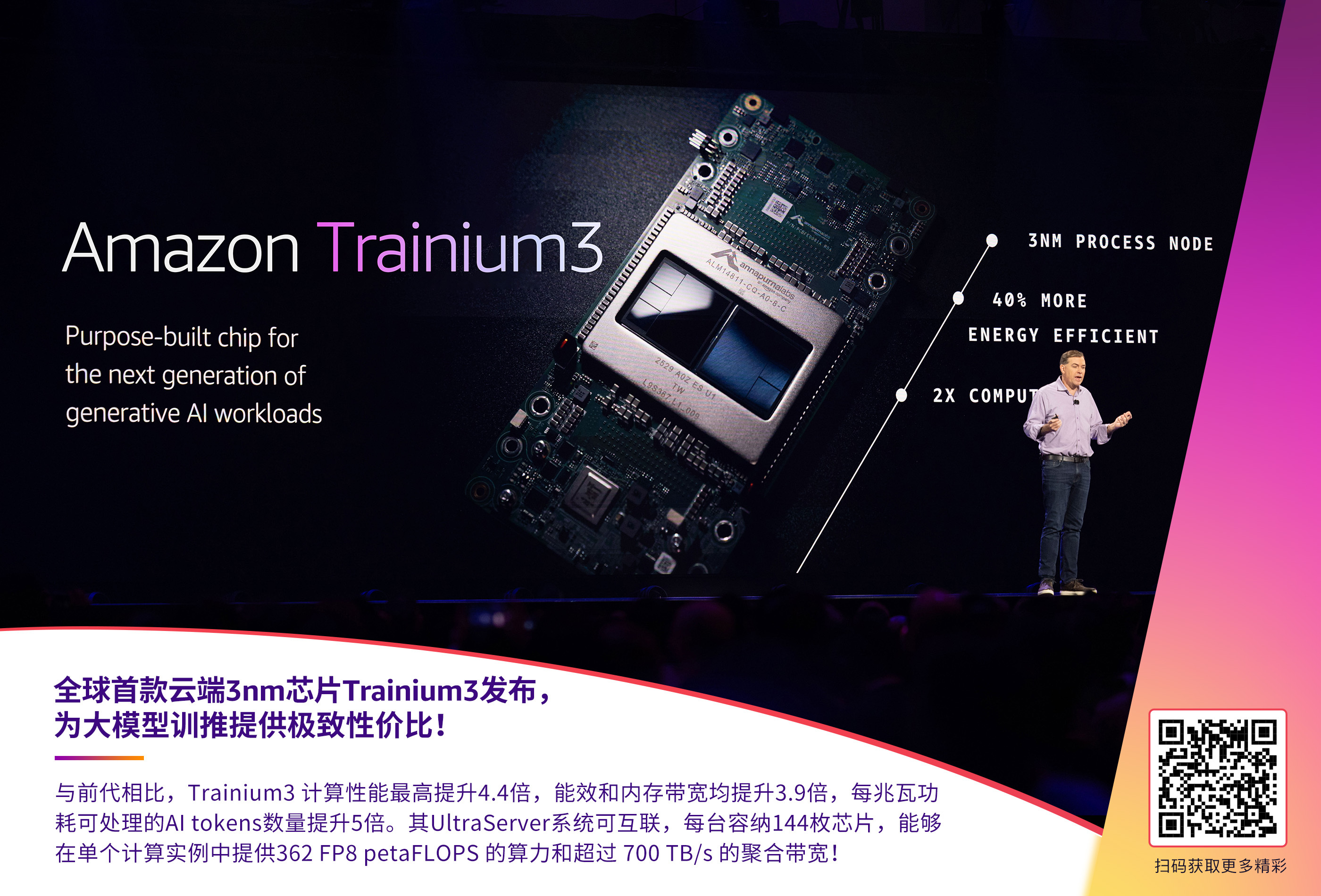 ⚡️ 3nm 芯片杀疯了!全球首款云端 Trainium3 横空出世,算力能效多倍暴涨,UltraServer 集群释放超强算力,大模型训推直接拿捏极致性价比,硬核实力狠狠圈粉!