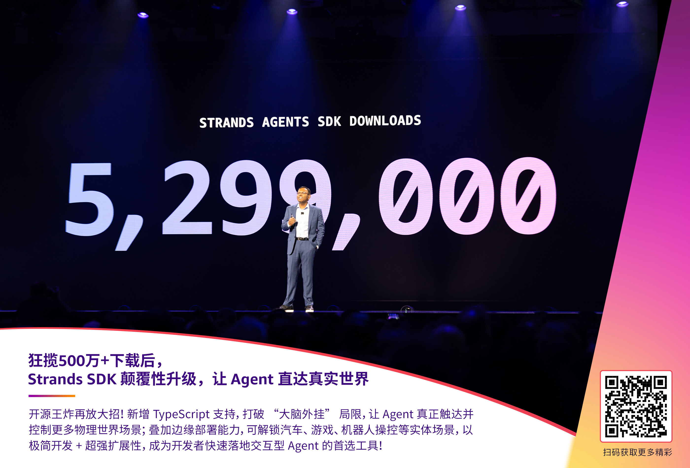 ⏰ 开源王炸引爆 Agent 开发!下载量破 500 万 + 的 Strands SDK 完成升级,TypeScript 支持适配多语言、边缘部署打通实体场景,用最少代码就能高效搭建全场景 Agent!