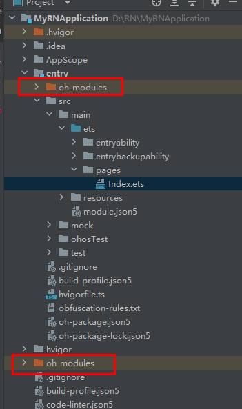 import { RNAbility } from '@rnoh/react-native-openharmony';import { hilog } from '@kit.PerformanceAnalysisKit';export default class EntryAbility extends RNAbility { getPagePath() { return 'pages/Index'; } override onCreate(want: Want): void { super.onCreate(want); hilog.info(0x0000, 'testTag', '%{public}s', 'EntryAbility onCreate'); }}5.在 MyRNApplication\entry\src\main\ets 目录下新增 RNPackagesFactory.ets, 复制如下代码。
