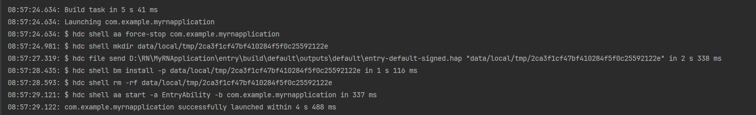在刚创建的 HarmonyOS 工程的 entry(D:\RN\MyRNApplication\entry>)目录下执行命令: