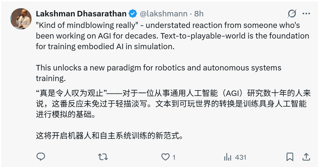 可以说,在 Project Genie 身上,已经释放出一个非常明确的信号:世界模型正在从长期的前沿研究方向,正式迈入可落地、可探索的关键阶段。