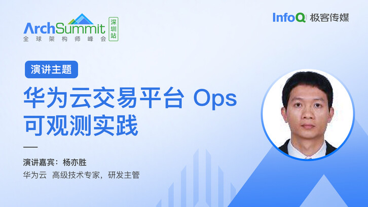 7 月 21 日 - 22 日, 在 ArchSummit 全球架构师峰会(深圳站),华为云高级技术专家、研发主管杨亦胜,将于会上发表题为《华为云交易平台 Ops 可观测实践》的演讲,详细介绍华为云交易系统架构和监控体系及其面临的问题和挑战,分享华为云交易平台 Ops 可观测实践经验。