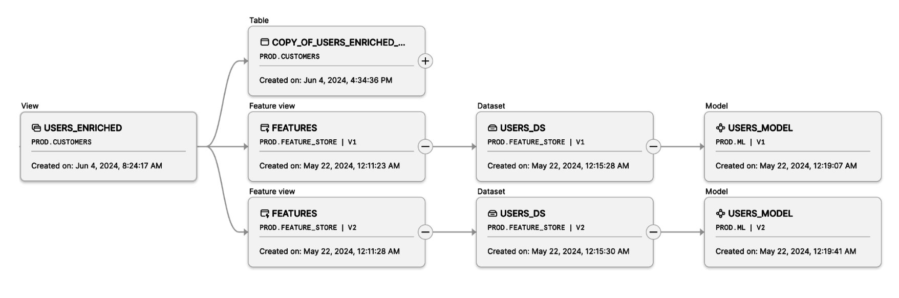 图 5 Snowsight 用户界面中的机器学习资产沿袭功能,可实现轻松复现、调试与审计