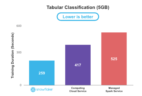 通过使用 Snowflake Notebooks 容器运行时的默认开箱即用设置进行训练,我们的基准测试显示:针对表格数据,Snowflake 上的分布式 XGBoost 训练速度比托管式 Spark 解决方案快 2 倍。借助 Snowflake ML,数据科学家和机器学习工程师可大幅减少在基础设施与扩展性上的投入,从而将更多时间用于开发和优化机器学习模型,并快速实现业务影响。