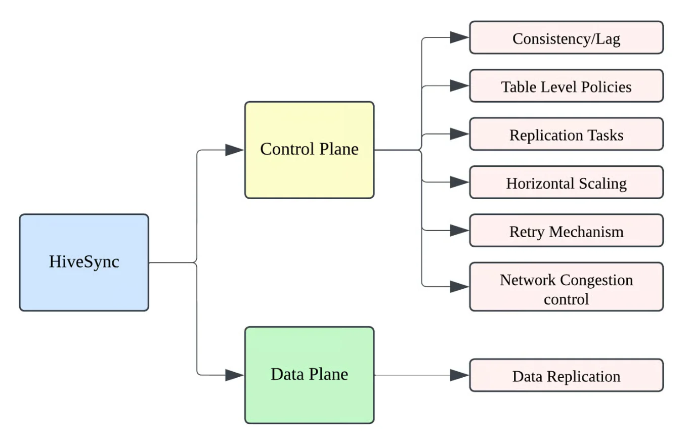 HiveSync 架构:控制平面和数据平面分离(来源:Uber博文)
