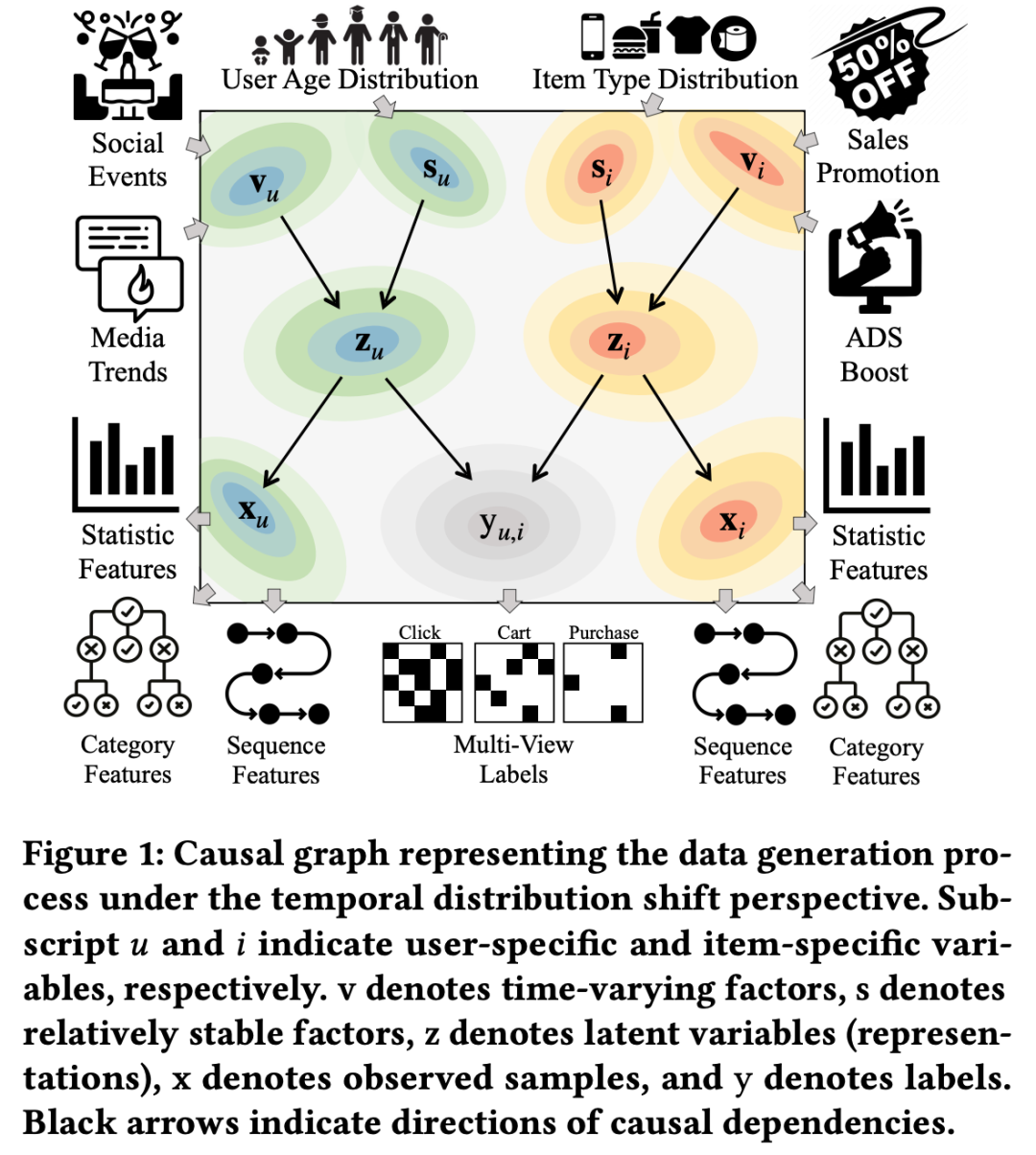针对这一问题,Shopee 傅聪团队联合新加坡管理大学 SMU,深入分析挖掘了工业级推荐系统数据分布迁移的模式,并在此基础上提出了一种模型架构无关的学习框架 ELBO_TDS(Evidence Lower Bound Objective for Temporal Distribution Shift)。