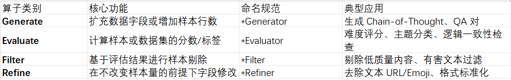 DataFlow 将近 200 个内置算子严格划分为四类,建立了标准化的语义命名规范:
