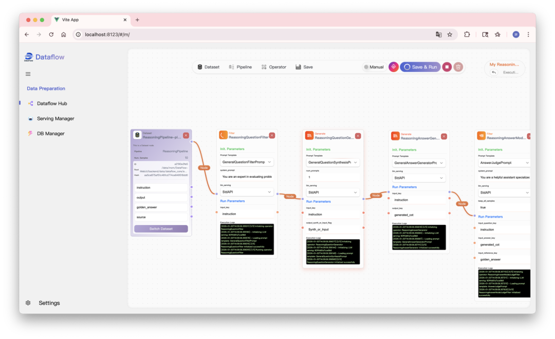 针对“黑盒清洗”的痛点,我们正式推出了 DataFlow-WebUI。它将复杂的算子库包装进图形化界面,支持: