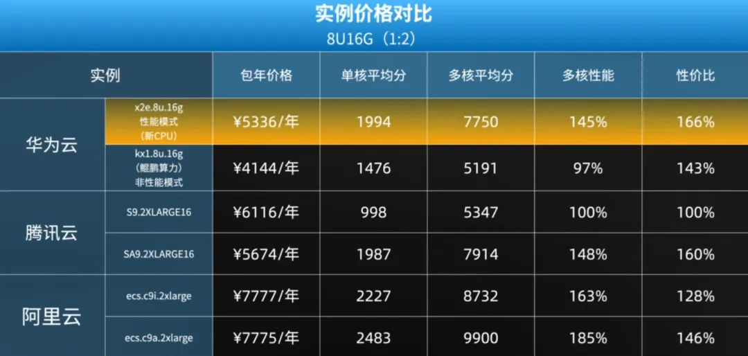 除了极致的灵活性,Flexus X 在性能上同样堪称“怪兽”。得益于华为云底层全栈自研的优势,Flexus X 实例对比业界独享型实例,能提供高达 1.6 倍的 CPU 算力,性能表现甚至可以堪比友商旗舰机型,但价格不到友商旗舰的 70%。