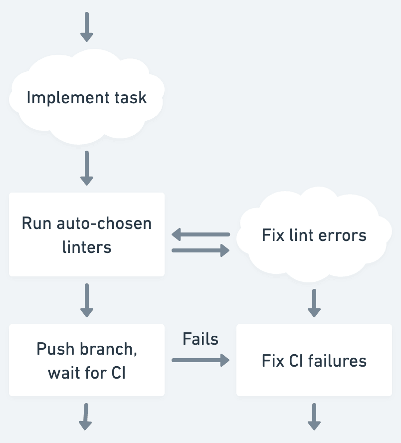 Minions通过蓝图(blueprints)进行编排,蓝图是用代码定义的工作流,规定如何将任务拆分为子任务,并根据任务类型由确定性的例程(routine)或智能体来进行处理。Stripe 工程师将蓝图描述为与代码交织在一起的智能体技能集合,在保证效率的同时保留了适应性。