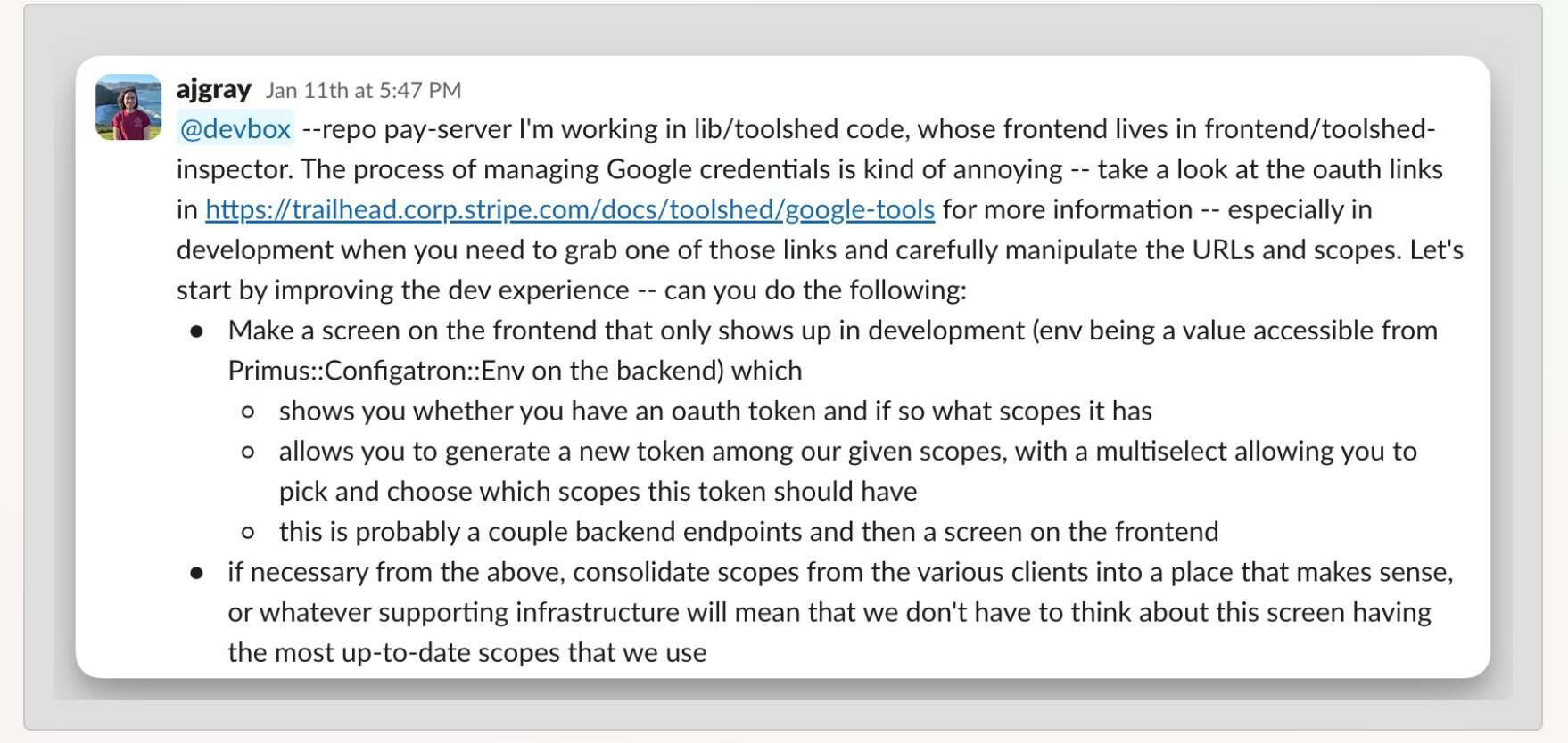 调用 Minion 的 Slack 消息示例(来源:Stripe的博客文章)
