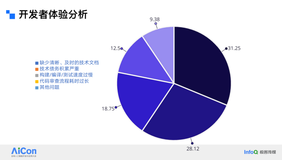 进一步分析,我们发现导致这一困境的原因主要有三个方面。首先,约 30% 的人认为游戏研发过程中缺乏清晰、及时的技术文档,这与游戏的发布周期密切相关。例如,一个资料片可能需要在两个月内上线,根本没有时间进行详细的技术设计,通常是基于上一次资料片的经验快速复用并上线,这种心态导致了技术债务的不断积累,占比约 28%。其次,游戏研发管线比传统的 Web 开发复杂得多,测试、编译、调试的速度缓慢,一次性审查大量代码耗时过长,这也是一个突出问题。