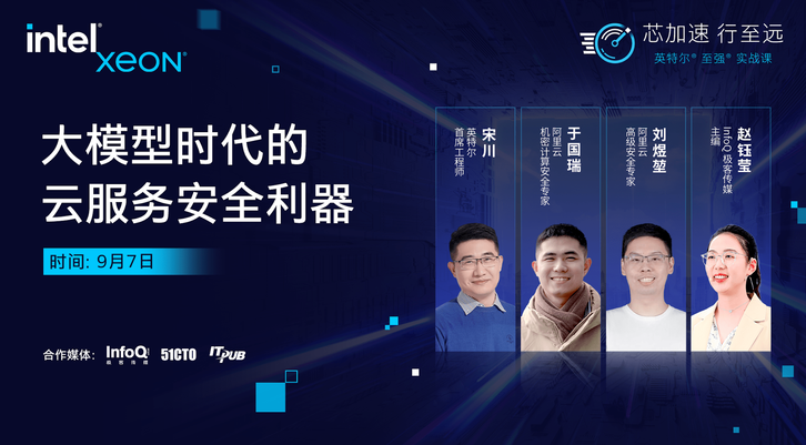 《英特尔®️ 至强®️ 实战课》新一期内容即将上线,大招来袭!本期以“大模型时代的云服务安全利器”为主题,邀请 InfoQ 极客传媒主编赵钰莹、英特尔首席工程师宋川、阿里云机密计算安全专家于国瑞、阿里云高级安全专家刘煜堃四位业内大咖,从基本原理、技术框架、场景案例等方面,详细阐述英特尔®️ 至强®️ 处理器机密计算在人工智能数据安全和隐私保护方面的应用及实践。通过本期课程,您将了解到当前云服务安全领域的前沿趋势和解决方案,并获得更专业的实战经验!