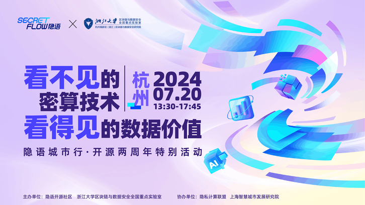 本次「隐语城市行·开源两周年特别活动」由隐语开源社区和浙江大学区块链与数据安全全国重点实验室主办,隐私计算联盟和上海智慧城市发展研究院协办。以「“看不见”的密算技术 & “看得见”的数据价值」为主题,旨在汇聚产学研各界力量,分享隐语隐私计算及大模型隐私保护等前沿技术探索,交流产业级标杆实践。同时,共同探讨未来数据要素市场发展机会与生态合作,以期围绕产业数据流转全链路,从局部到广域,推动社会数据大规模可信流通体系建设。