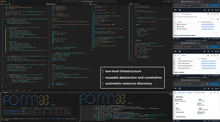 formae 通过自动发现和编码现有基础设施来区分自己。该平台映射了云资产中所有运行的资源,无论这些资源最初是如何创建的,无论是通过 Terraform、OpenTofu、Pulumi、手动云控制台操作还是遗留脚本。这种方法与传统的基础设施即代码工具形成对比,后者需要工程师从计划开始,并根据创建资源的工具维护单独的状态数据。