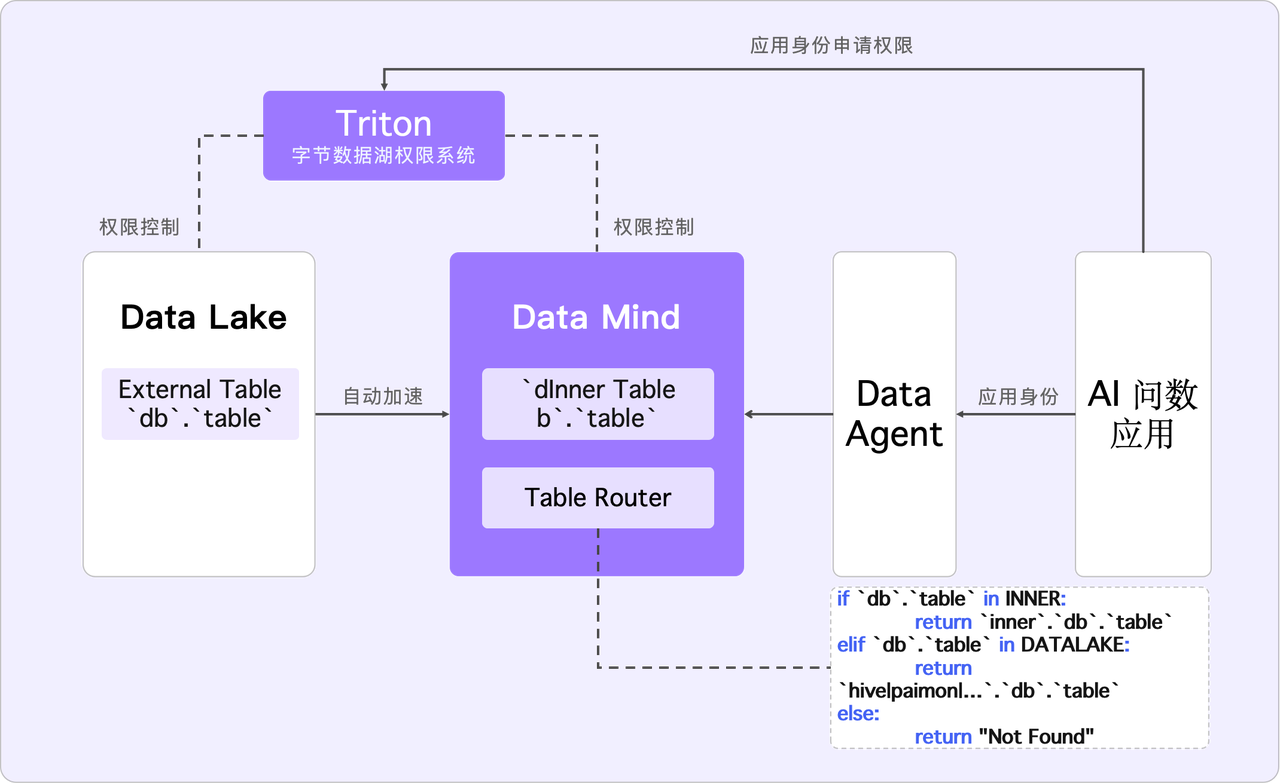 改进 Data Agent 查询的路由机制:用户只需书写库表名,系统将在优化器阶段自动判断路由、补全表名。用户对于 Data Agent 的使用,只需理解数据湖中的 Schema,无需关注表是存储在数据湖还是已加速至 Apache Doris。