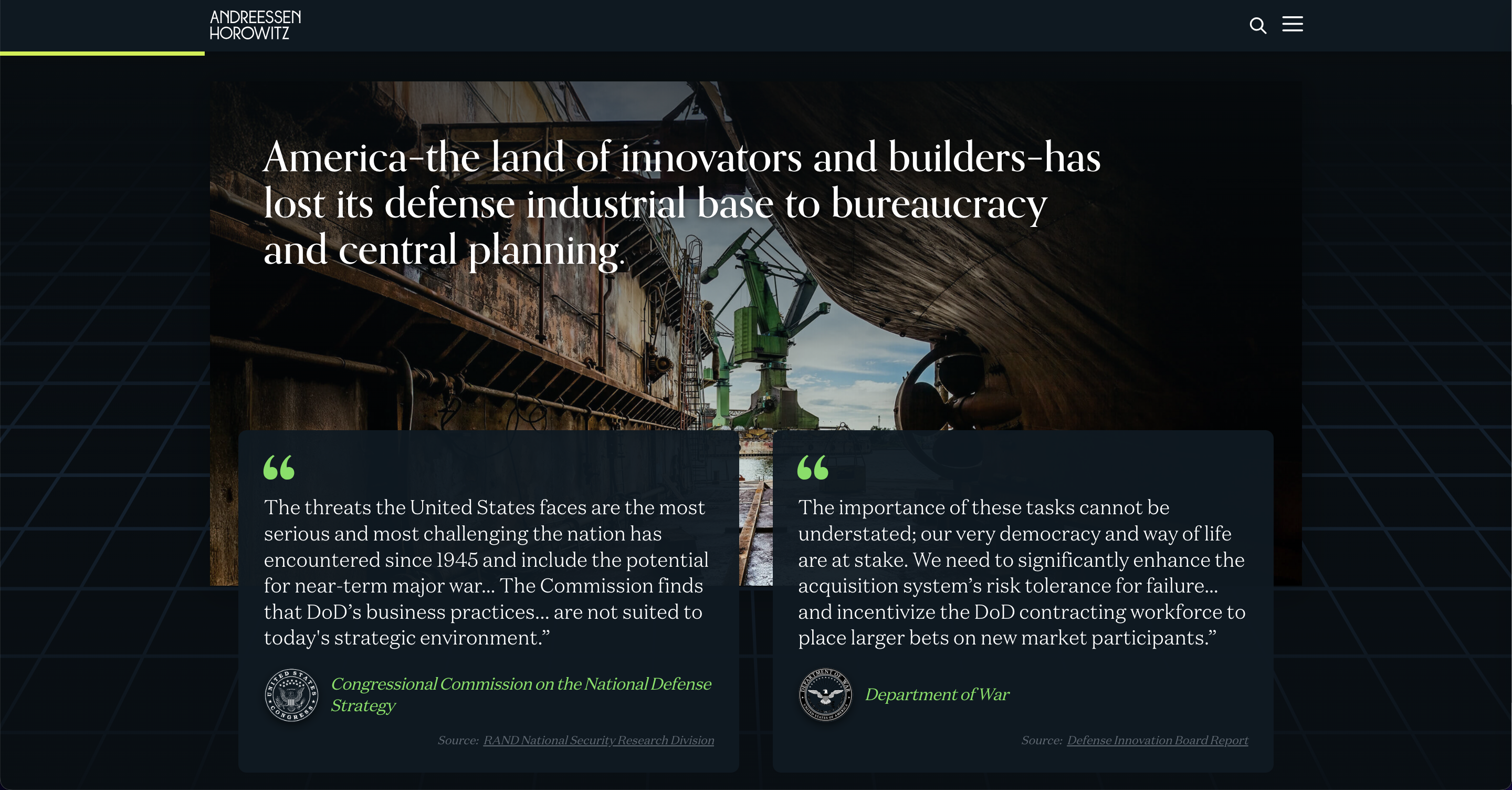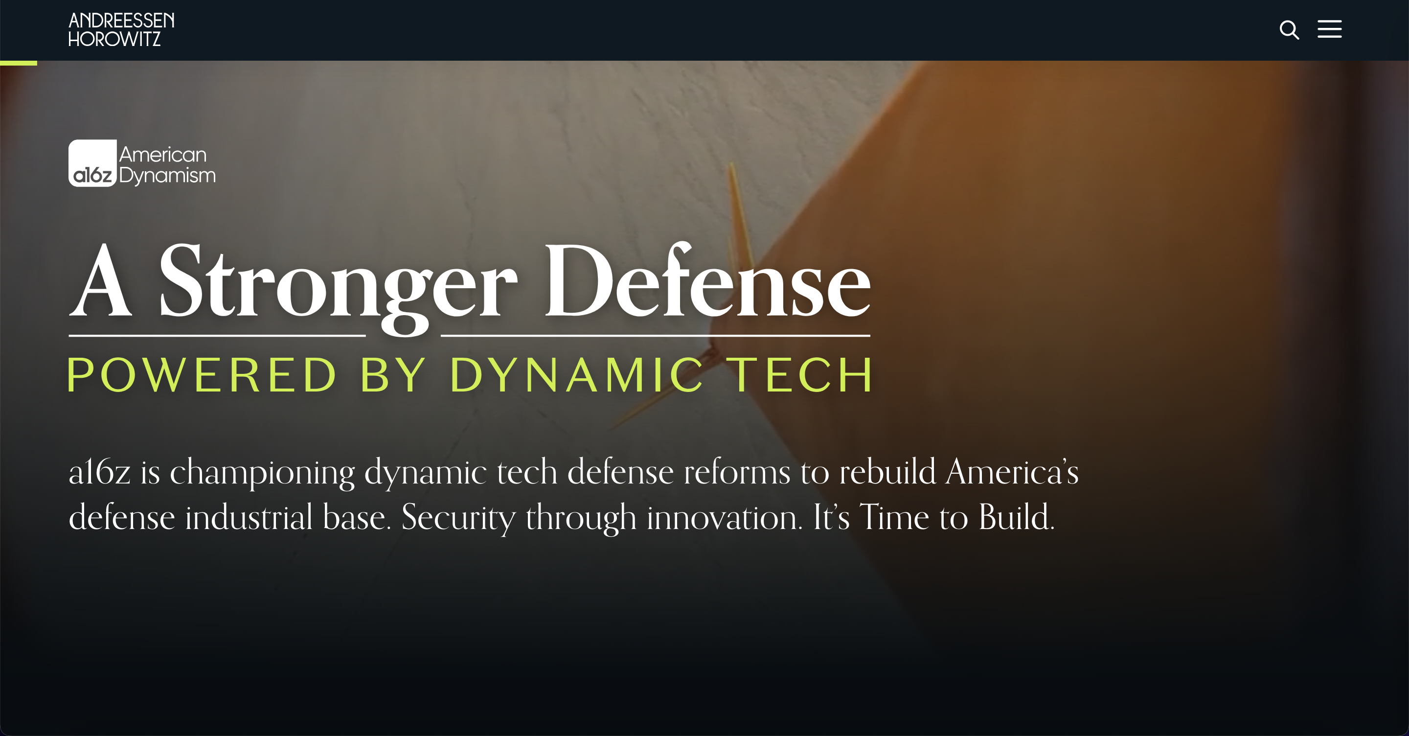“a16z 致力于推动动态的国防科技改革,以重建美国的国防工业基础。以创新保障安全。是时候行动了。”
