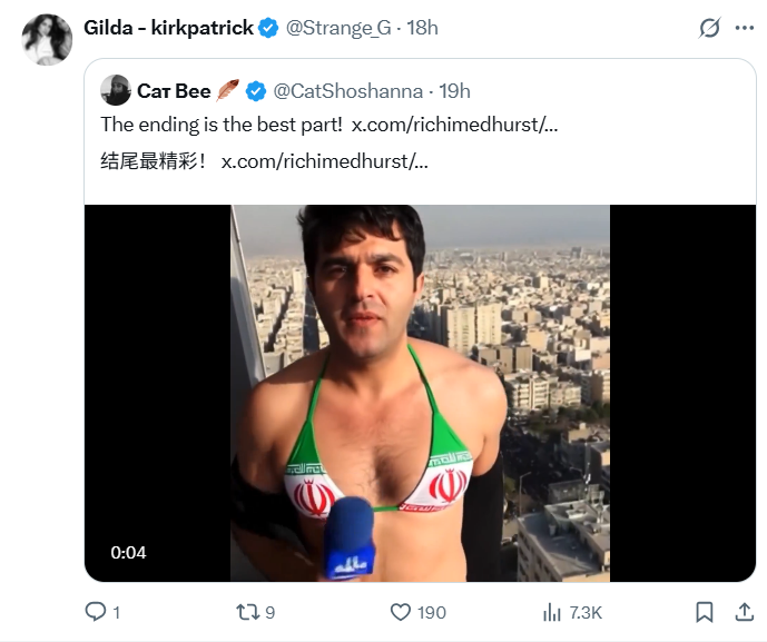伊朗政策分析师 Behnam Gholipour 公开质疑画面真实性,并谴责这是人工智能生成的虚假信息。