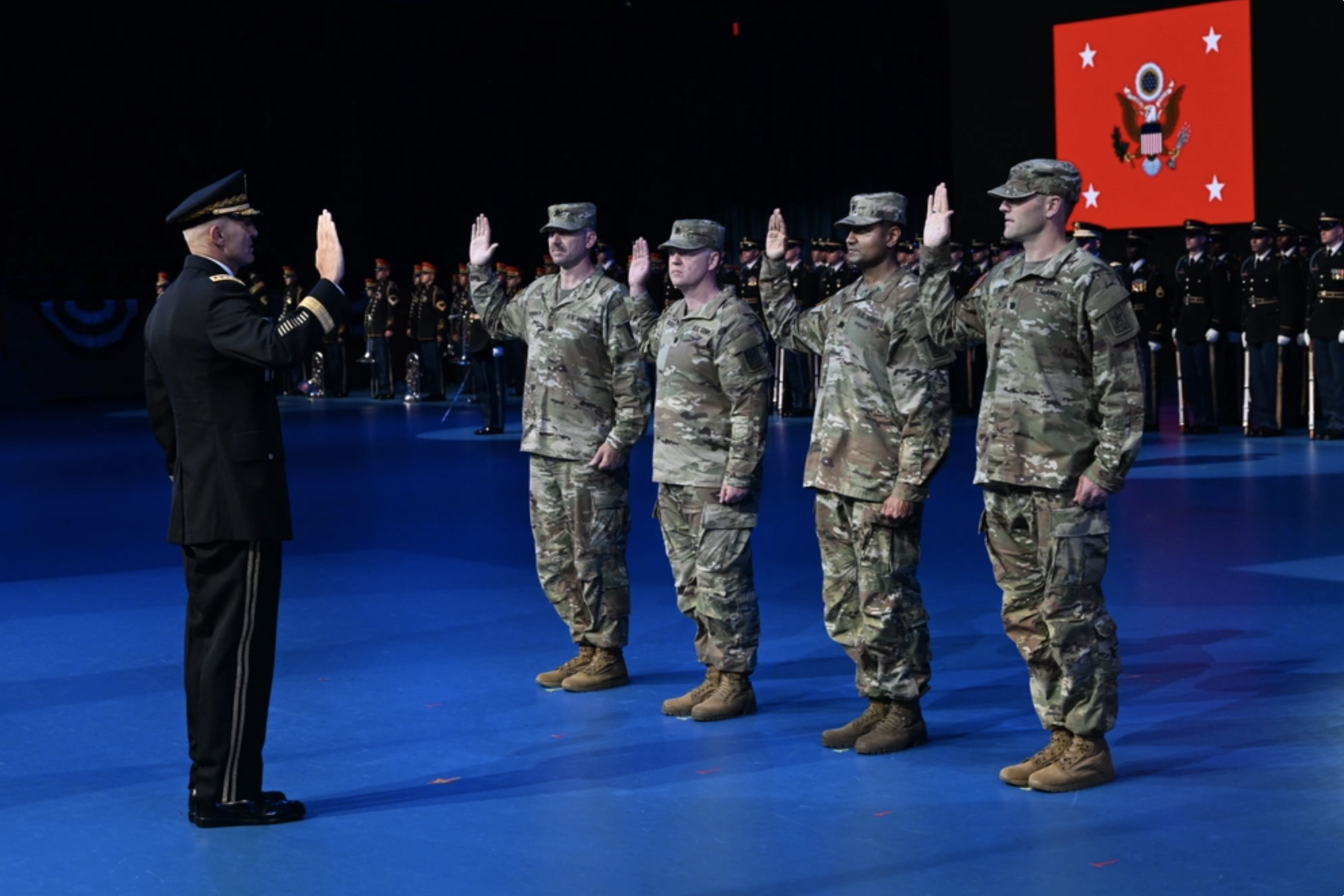2025 年 6 月 13 日,美国陆军参谋长 Randy A. George 为四名新任美国陆军中校主持宣誓就职仪式。