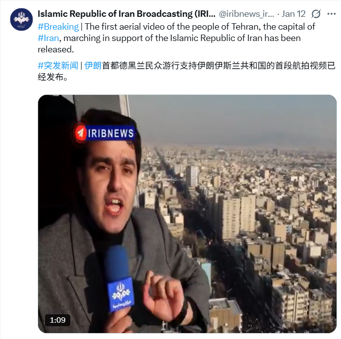 一段“万人上街支持政府”的航拍视频,在 1 月 12 日突然刷屏社交平台。
