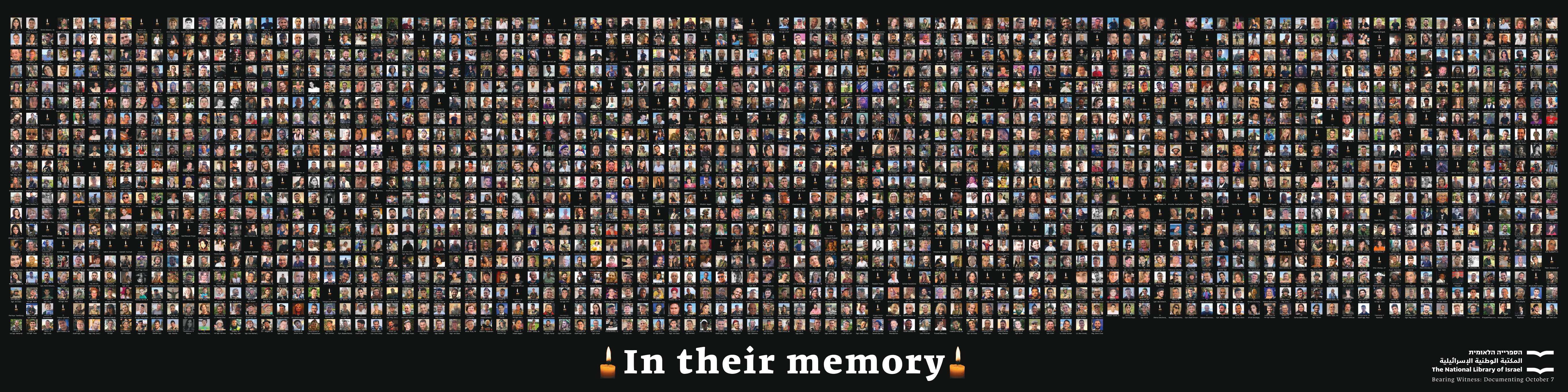 图片为以色列国家图书馆推出的“10 月 7 日纪念墙”,展示了 2023 年 10 月 7 日以来遇难的平民、以色列国防军士兵的照片和姓名。