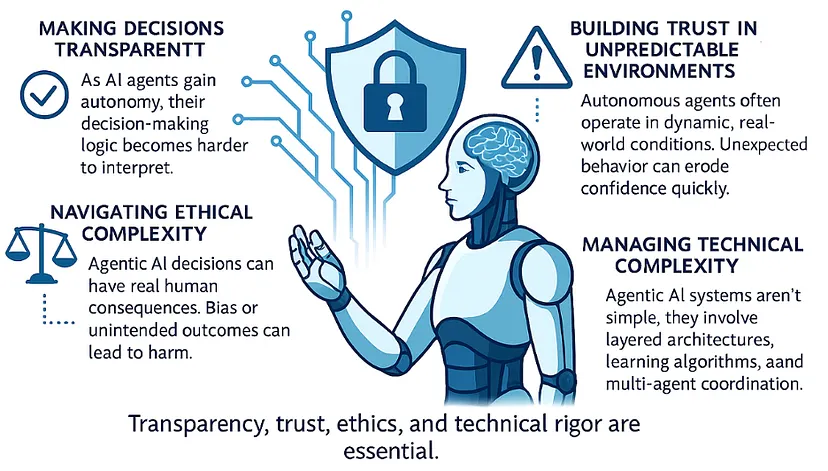 应对技术复杂性的挑战:Agentic AI 系统本身结构复杂,通常包含多层架构和多种学习算法,并需协调多个智能体间的协作。