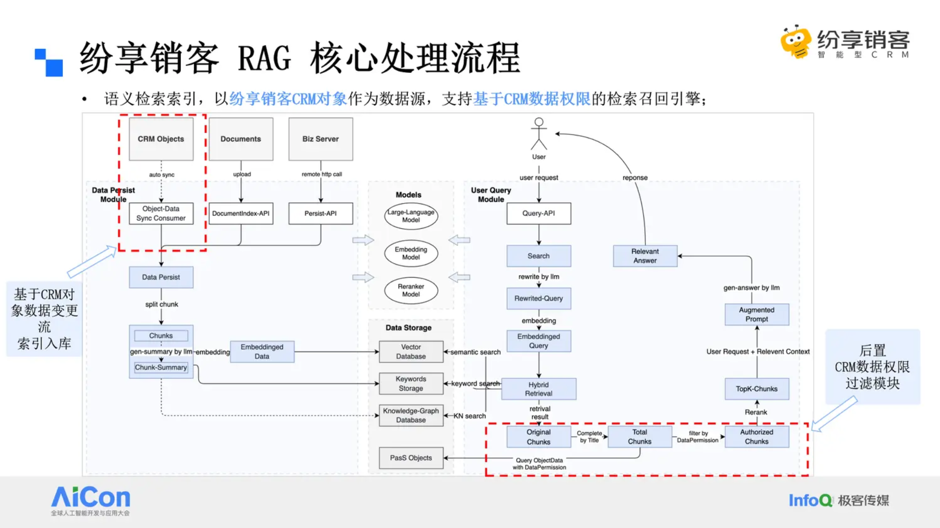 企业级 AI 的核心价值依赖于内部业务数据的有效利用,但数据检索的精准性与安全性始终是落地难点。对此,纷享销客在实践中构建了基于 CRM 对象的语义检索索引体系,将索引访问权限与 CRM 业务数据权限完全对齐 —— 普通销售仅能检索自身负责的客户数据,管理者可访问团队数据,从源头实现数据安全管控。同时通过 "语义连贯文本分段" 与 "多维度多路召回" 策略,提升检索精度,为解决 "找对数据、用对数据" 的行业共性问题提供了实践样本。