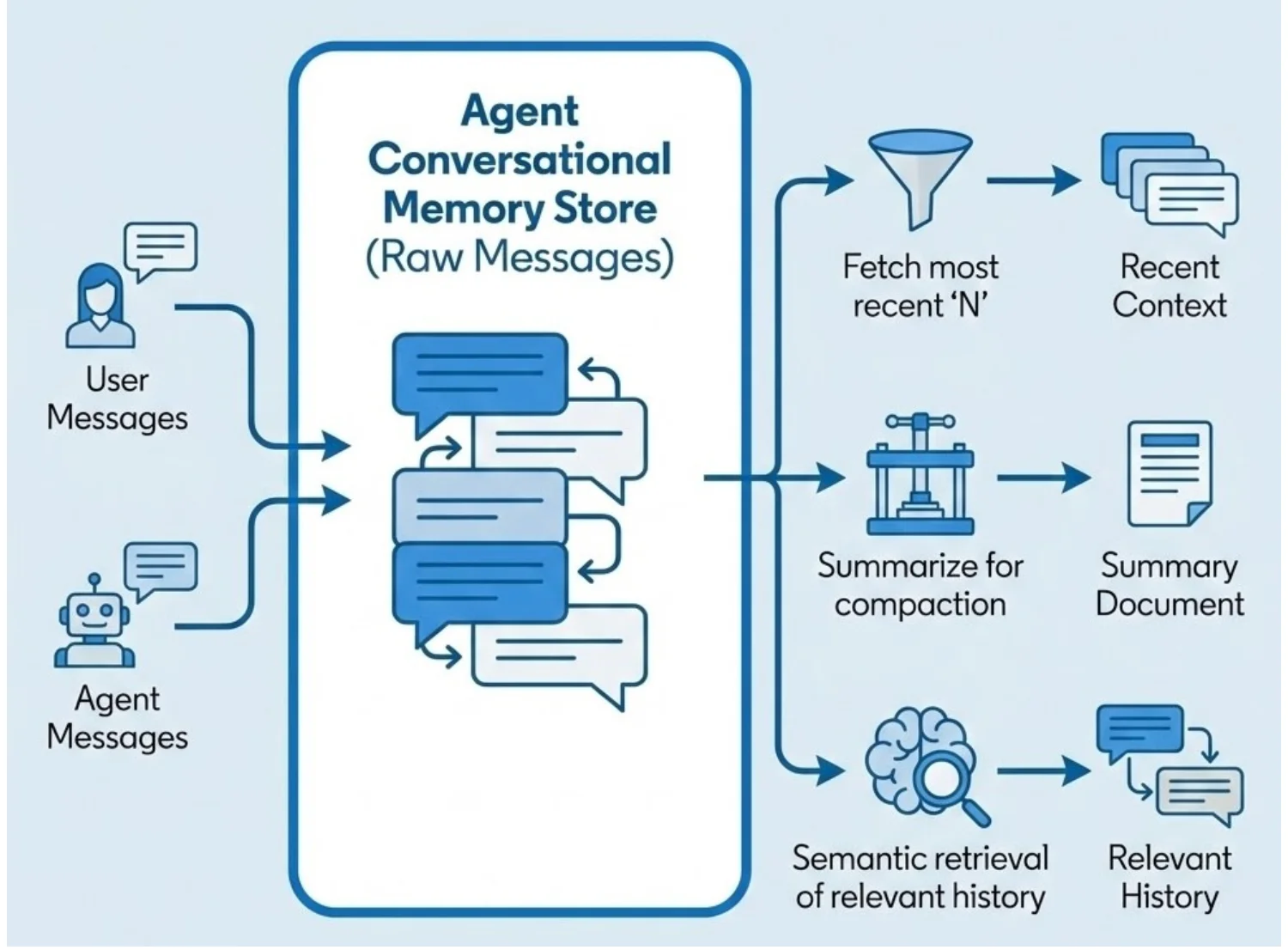 该架构将记忆划分为三个不同层级。情景记忆(Episodic memory)用于捕获交互历史与对话事件,让智能体能够回忆过往的交流内容。语义记忆(Semantic memory)存储从交互中提炼出来的结构化知识,支持对用户、实体及偏好等持久化信息进行推理。程序记忆(Procedural memory)对已习得的工作流程与行为模式进行编码,帮助智能体优化任务执行策略。三层记忆协同作用,使智能体的行为从单次响应升级为长期自适应演进。