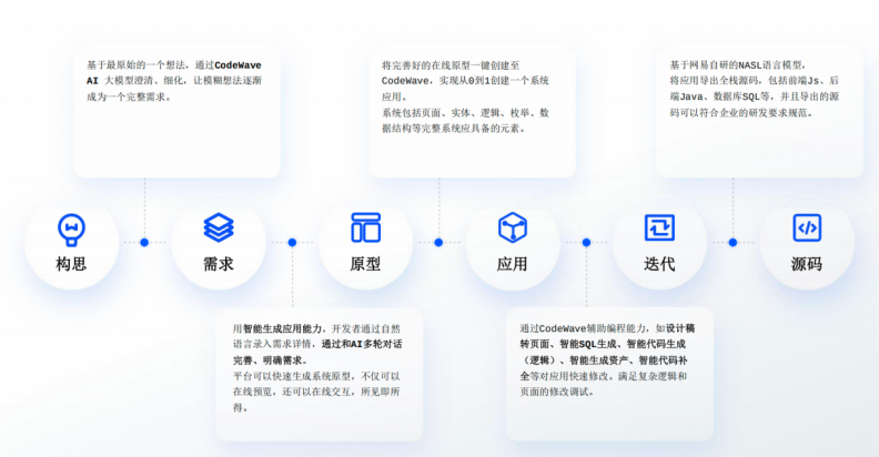 10 月 14 日,CodeWave 对外发布多项智能开发能力,支持从需求梳理、产品构思、开发部署、迭代等全流程研发智能化,其采用可视化与 AI 融合的开发方式,同时保留人工布局与精细调整的空间,进而打造更可控、更规范、更落地的智能开发模式。