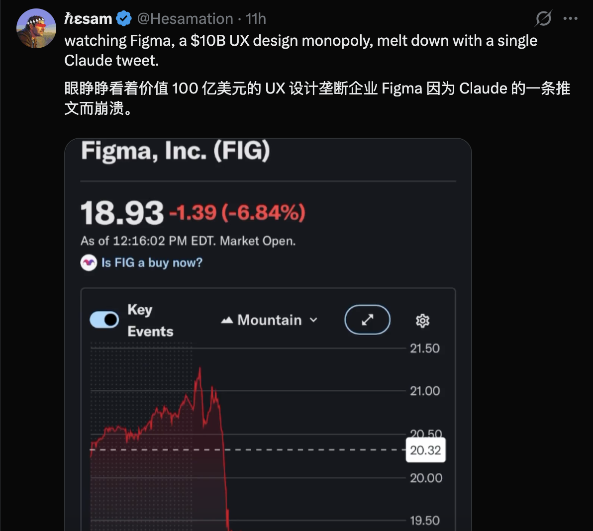 此外,Anthropic 首席产品官在发布前三天从 Figma 董事会辞职,也被部分市场解读为行业格局变化的一个信号。不过,也有观点认为,这类波动未必完全由 Claude Design 引发,在整体 SaaS 行业承压的背景下,单日 4% 左右的跌幅仍属于正常区间。