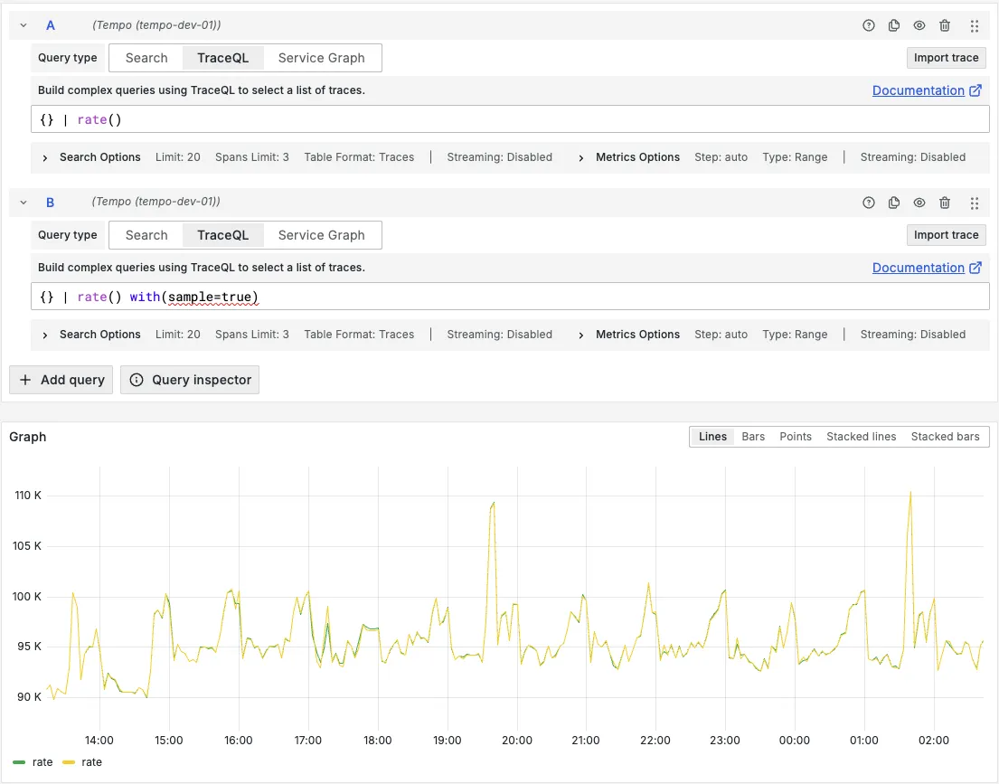 Grafana Tempo 2.9 对追踪功能进行了增强,其中最显著的新增功能是实验性的模型上下文协议(MCP)服务器支持,能够让 AI 助手通过 TraceQL 来查询访问追踪数据。它在 TraceQL 中增加了概率采样提示,例如 with(sample=true) 或 with(sample=0.xx),让用户在高吞吐量环境中牺牲部分精度来换取查询速度。该版本还通过增加新的指标(如查询期间检查的字节数、跨度前后时差)提升多租户设置中的操作可见性。