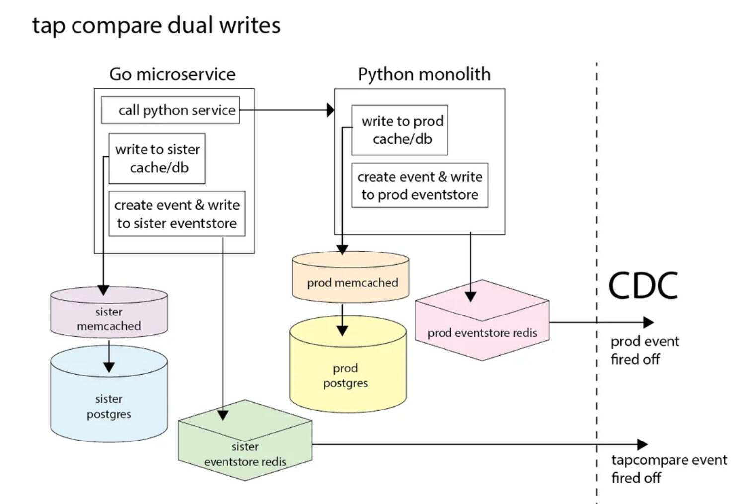 在双重写入后进行 tap-compare 验证(来源:Reddit工程帖子)