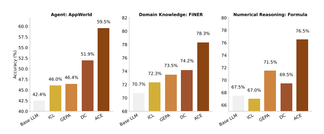 基于 LLM 的系统通常依赖于提示词或上下文优化来提升推理能力和整体性能。虽然像 GEPA 和动态备忘单这样的技术在一定程度上改善了模型表现,但它们往往过度追求简洁性,这可能导致“上下文坍缩”现象,即在反复改写过程中丢失关键细节。ACE 通过将上下文视为一种随着时间推移,通过模块化生成、反思和策划逐步发展的动态剧本,成功地解决了这一问题。
