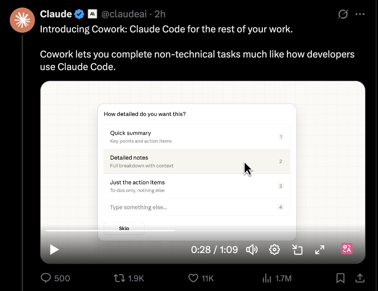 从这个角度看,Cowork 并不是一个“已经完全成熟”的产品,而更像是一次对未来工作方式的现实实验。