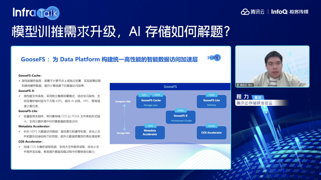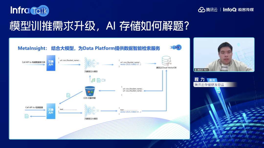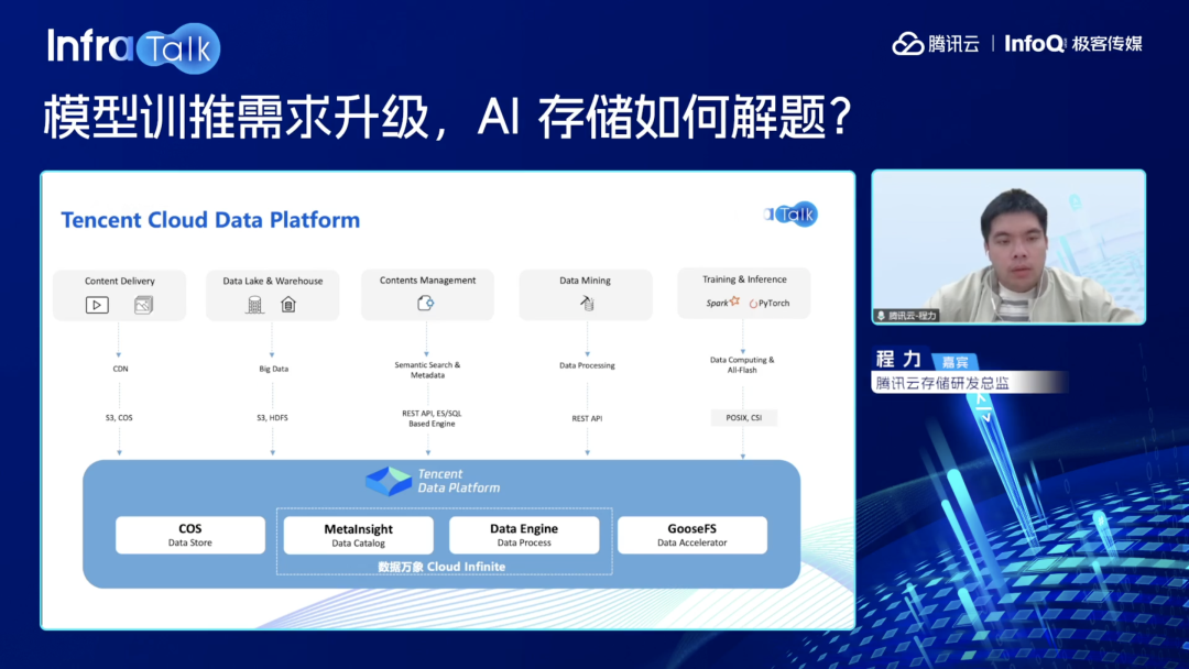 在这一背景下,数据基础设施的角色正在发生根本性转变。腾讯云存储研发总监程力认为,作为底层基础设施,存储必须向上深度融合,与容器、云函数、AI 平台等上层服务实现深度集成与资源协同调度。其核心价值已超越提供存储空间本身,而在于作为数据流转的智能引擎,无缝融入企业的整体 AI 工作流,确保数据能在计算与训练环节高效流动。