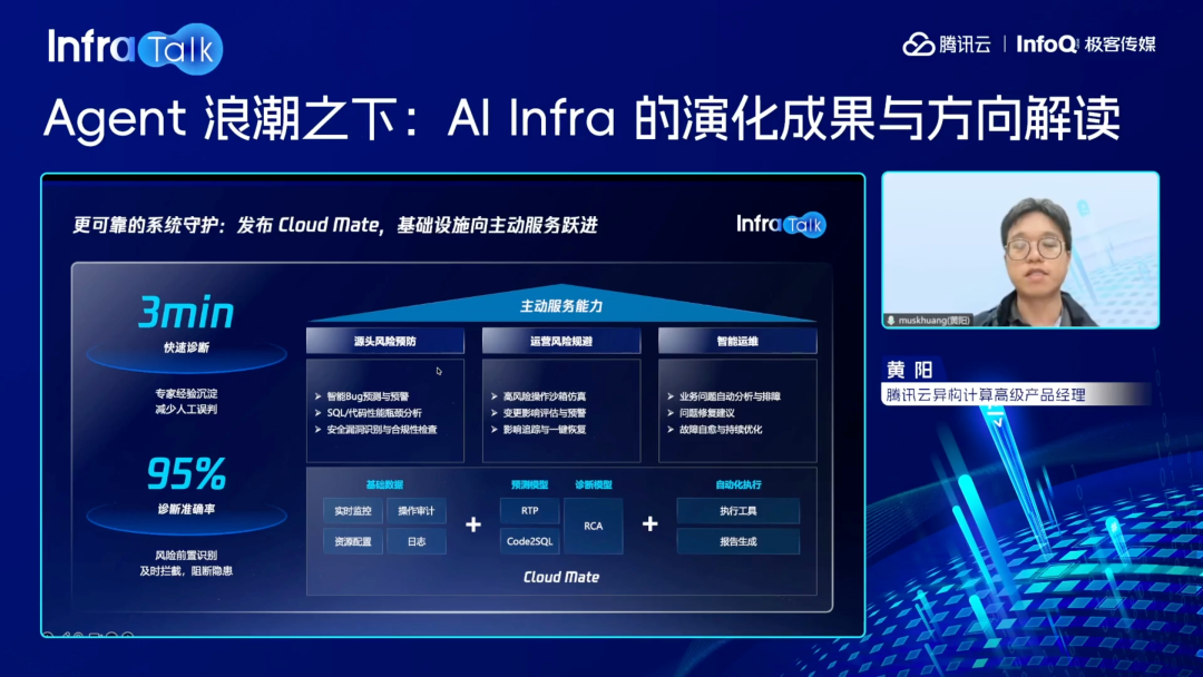 今年,领先云厂商均在积极升级其计算、存储、网络与数据能力,以构建更适配 Agent 大规模落地的新一代基础设施。例如腾讯云,其 2024 年推出的新 AI Infra 品牌“云智算”,今年动作频频:4 月,基于对 AI 云基础设施强需求、训推高频应用的行业——出行领域,发布了行业云智算 AI Infra 解决方案;5 月,腾讯云智算,全面扩展至全场景 AI 应用,技术能力全面升级,从高效、可靠、易用三大价值角度,支撑企业加速 AI 落地;9 月针对企业级 Agent 需求,发布 Agent Runtime 解决方案及基础设施专家服务智能体 CloudMate;10 月推出自进化运维 Agent 平台,技术迭代快速。