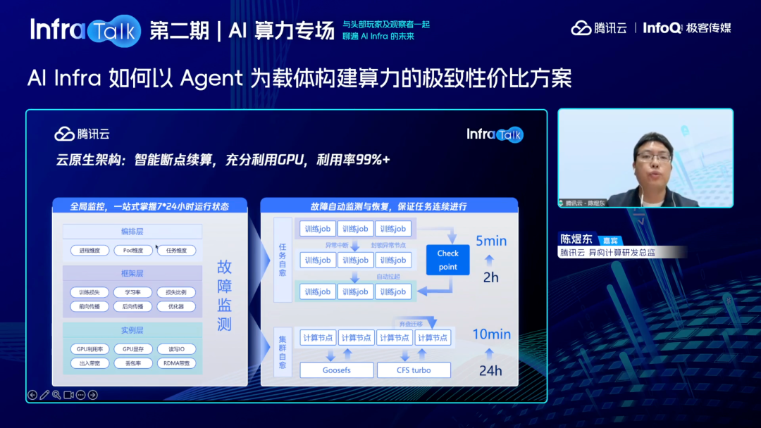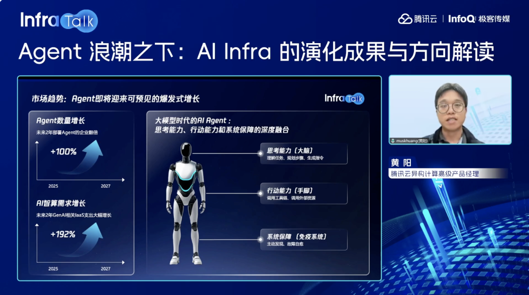 在 InfraTalk 直播中,腾讯云异构计算高级产品经理黄阳指出,从降本增效的角度出发,必须打造标准化的技术底座;而面向未来,深入业务场景的行业 Agent 将比通用 Agent 更强、规模更大。因此,腾讯云坚持同源同构原则,采取标准化底座 + 行业化解决方案,灵活适配不同行业对基础设施的要求。