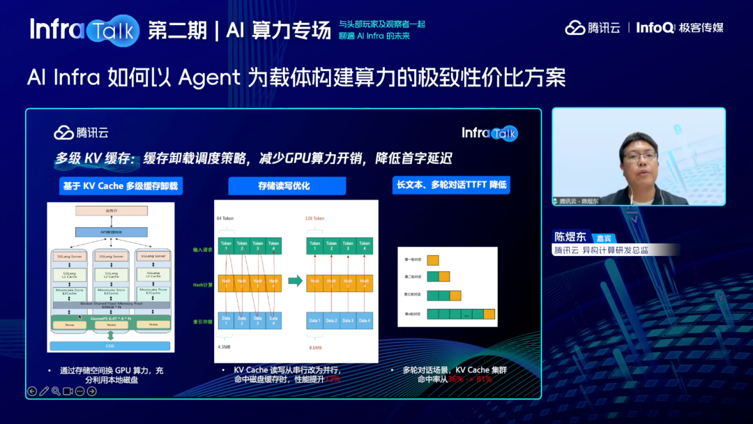 为了加快推理场景,腾讯云还开发了多机 KV Cache 缓存技术,将 KV Cache 存储到磁盘,方便未来多轮对话等请求场景调用。今年,腾讯云还新推出推理集群服务,集多样化模型、弹性算力与多层级的安全防护为一体,融合推理加速、机密计算、智能监控日志分析等核心功能, 保障 AI 应用开发落地。