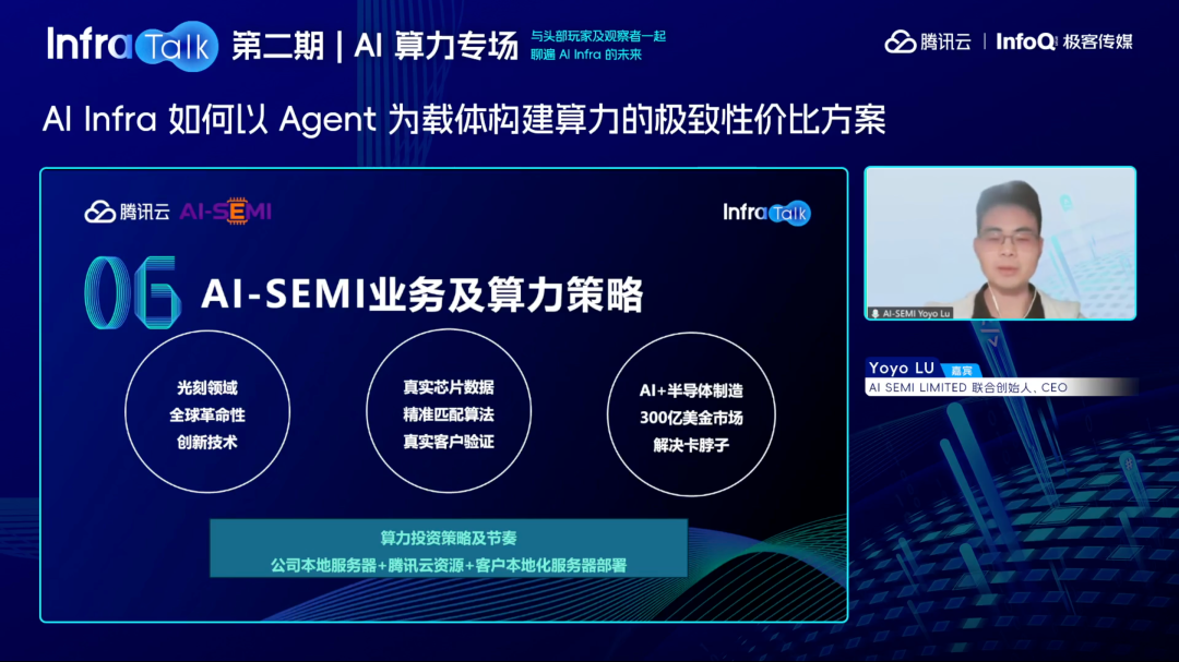 专注于用 AI 赋能半导体制造的 AI SEMI,业务涉及芯片仿真、良率分析等复杂计算,对算力的稳定性、扩展效率及 TCO 有着严苛要求。AI SEMI 采用混合云架构,既在公司和客户本地部署算力,也利用腾讯云的弹性资源。