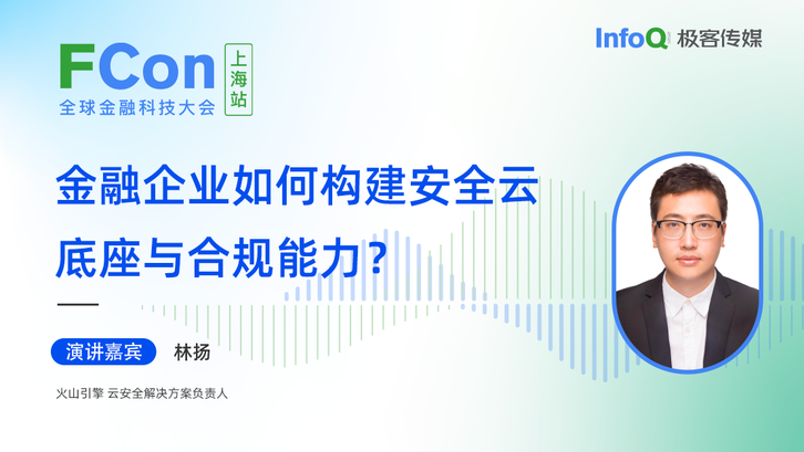 FCon 全球金融科技大会,将于 11 月在上海召开。火山引擎云安全解决方案负责人林扬将发表题为《金融企业如何构建安全云底座与合规能力?》主题分享,介绍金融行业安全现状,挑战和发展趋势、安全技术框架建议,以及相关案例。