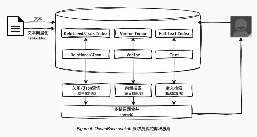 数据库最早为应用服务,处理结构化数据,得到的是确定性的结果。而在 AI 场景下,数据库不仅为应用服务,更为智能服务,需要处理无结构化数据,通过规则和模型得到语义近似的结果,这个过程通常称为搜索。由于这个过程涉及到结构化数据(关系表)、半结构化数据(JSON)以及无结构化数据的各类索引(向量索引、全文索引、图索引),因此可以统称为多模混合搜索,或者 AI 原生混合搜索。