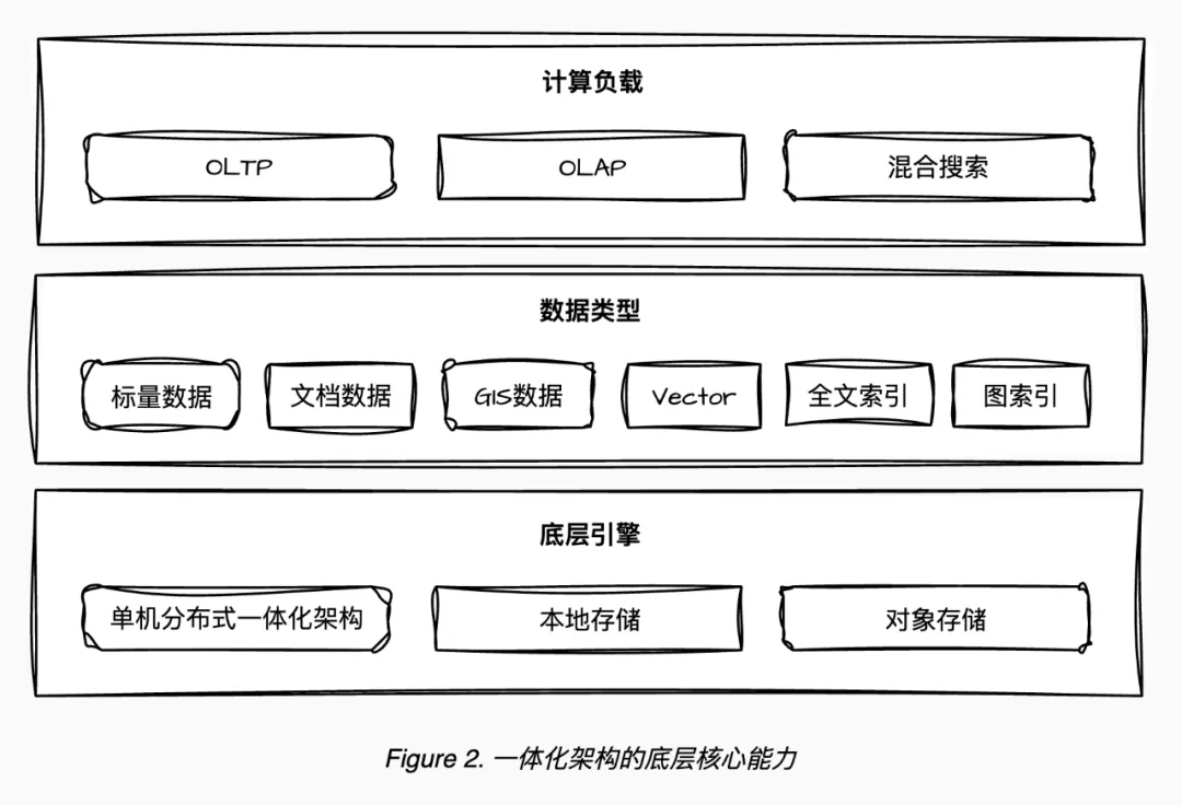 从“为应用服务”到“为智能服务”,既能处理传统的 OLTP、OLAP,也能够支持一种新的工作负载,既多模混合搜索;
