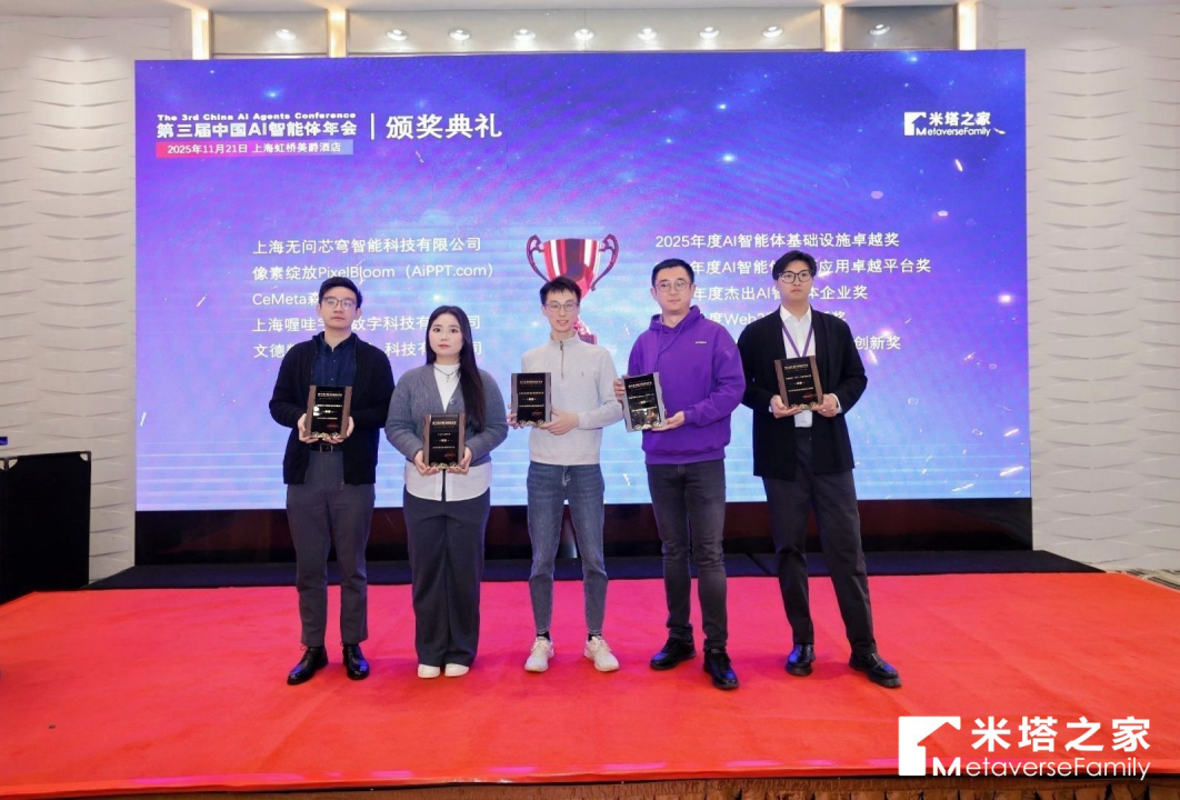 2025 年 11 月 21 日,上海 ——由米塔之家主办的“第三届中国 AI 智能体年会”在上海虹桥美爵酒店隆重举行。本届大会以“智启未来”为主题,汇聚政府代表、AI 领军企业掌舵人、技术权威专家及一线产业实践者,聚焦人工智能体的技术演进、产业落地与生态构建三大核心议题,共话前沿趋势,共谋发展路径。