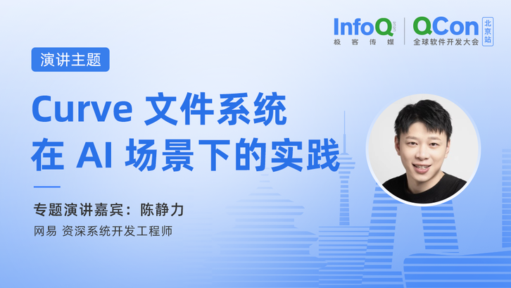 9 月 3 日 - 5 日,在 QCon 全球软件开发大会(北京站)上,网易资深系统开发工程师陈静力将发表题为《Curve 文件系统在 AI 场景下的实践》主题分享,介绍从 AI 的业务的不同场景出发, AI 业务对存储系统的需求,并介绍 Curve 文件系统采用了哪些技术来满足这些需求,以及在实践过程中遇到的问题与挑战。