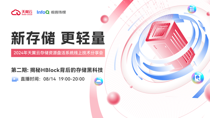 为了让“轻量存储”走进更多企业,InfoQ 和天翼云联合举办“HBlock 有奖众测活动”,欢迎广大存储 Geek 踊跃报名,深度体验轻量存储带来的不一样,将使用心得发布在 InfoQ 写作社区,即可参与评选并获得丰厚礼品!