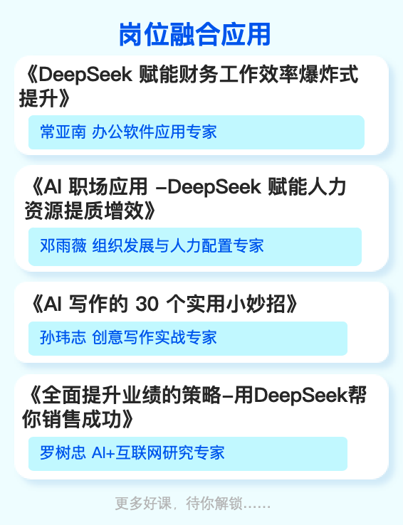 AI 办公提效:针对全员 AI,旨在让员工学会用 AI 处理繁琐工作,提升日均效率。
