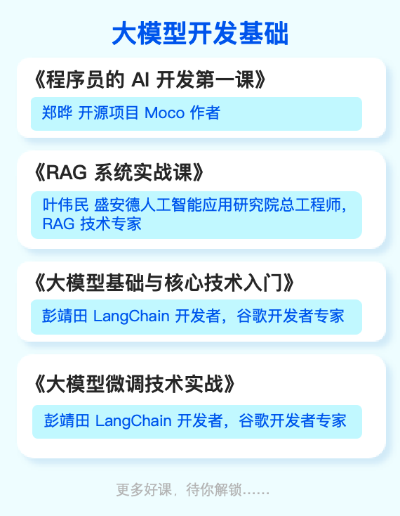 大模型开发基础:针对报告重点提及的大模型微调、RAG(检索增强生成) ,帮助团队掌握数据预处理、模型微调和私域知识库构建的硬核技能。