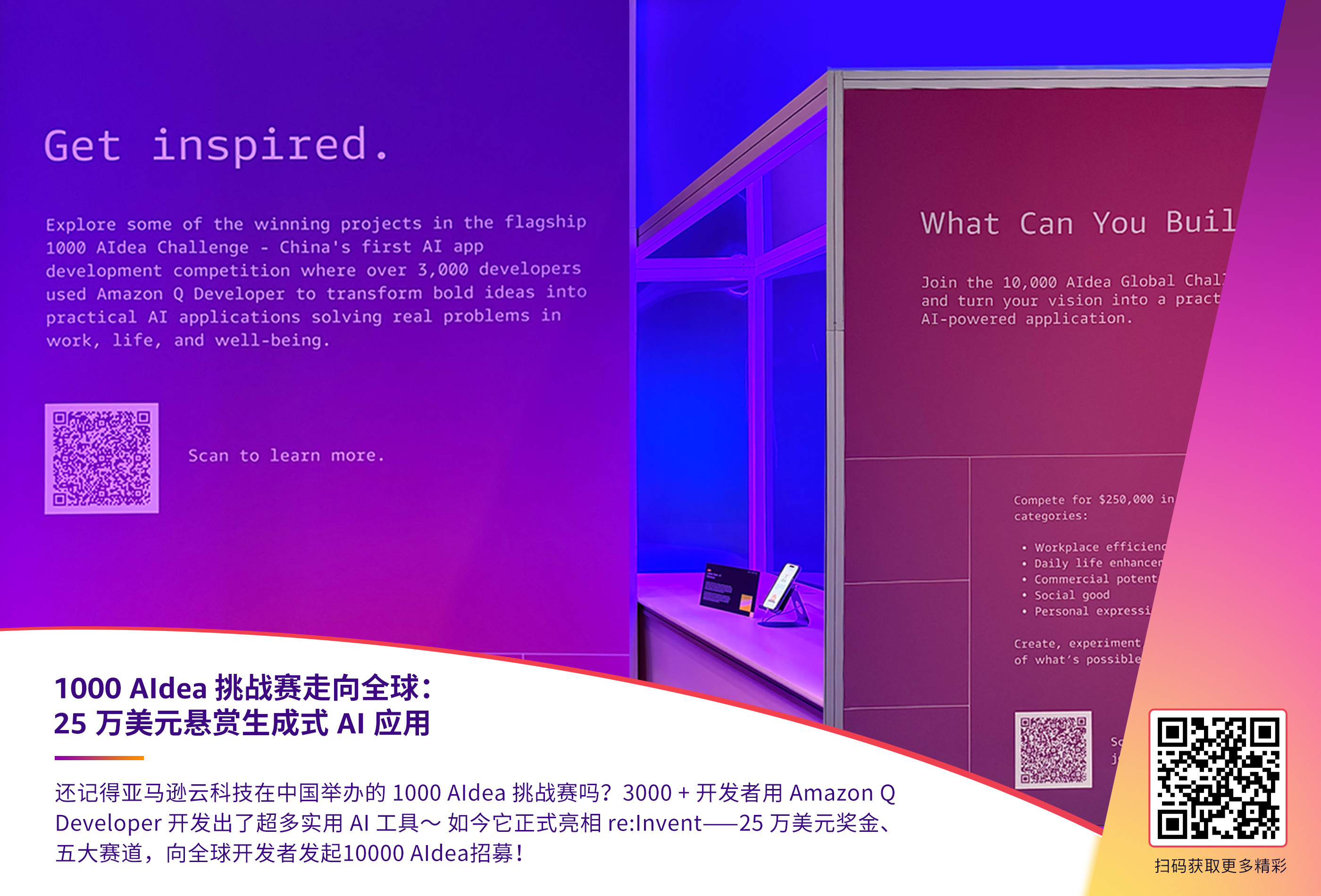 🚀 硬核创新持续炸场不重样!Amazon Leo 卫星互联网重磅登场,高速连接叠加 “卫星 + 云 + AI” 三重安全 buff;技术 Session 精彩分享不停歇;1000 AIdea 挑战赛升级,面向全球“重金招募”!