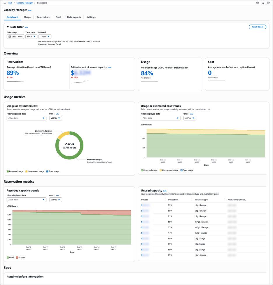 以前,在跨多个可用区协调按需实例、竞价实例和容量预留(CR)等类型的数百个实例时,大规模运营Amazon Elastic Compute Cloud(Amazon EC2)的组织会面临高度复杂的管理开销。底层容量数据分散在 AWS Management Console、Cost and Usage Reports(CUR)、Amazon CloudWatch 和各种 EC2 API 中,造成了明显的运营障碍。
